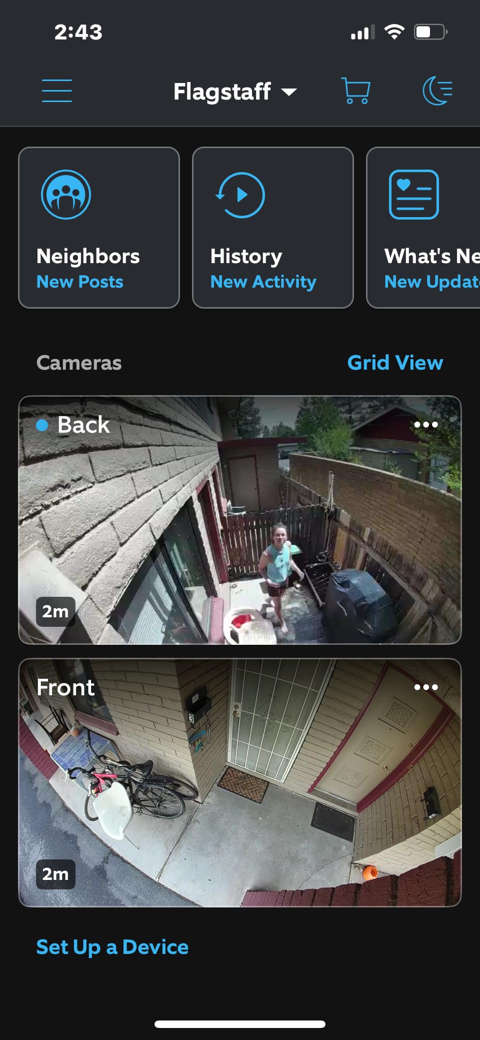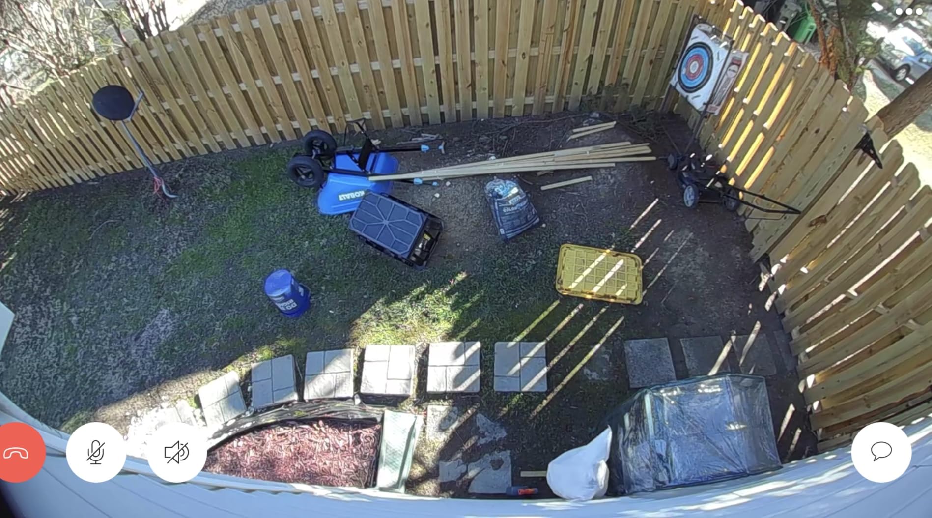I’ve attached screenshots with my review to show the wide camera angle, the daytime one is cropped to better ensure privacy for my neighbors. Forgive the mess! We’re in the middle of remodeling the sitting area of our backyard (for about a year now 😬).